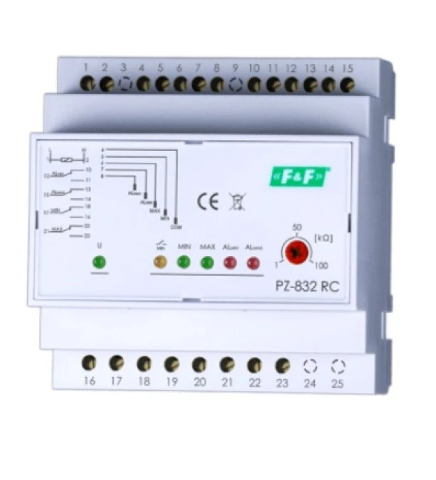 8. Przekaźnik kontroli poziomu cieczy 1-100kOhm 230V AC bez sondy z sygnalizacją PZ-832RCB 435.27