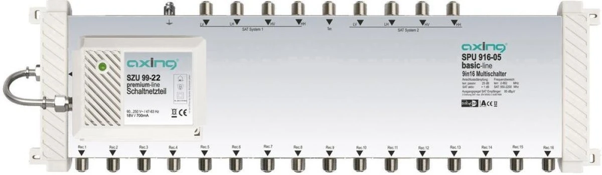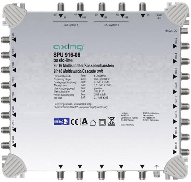 Axing SPU 916-06 Multiprzełącznik SAT, kaskadowy Ilość uczestników: 16