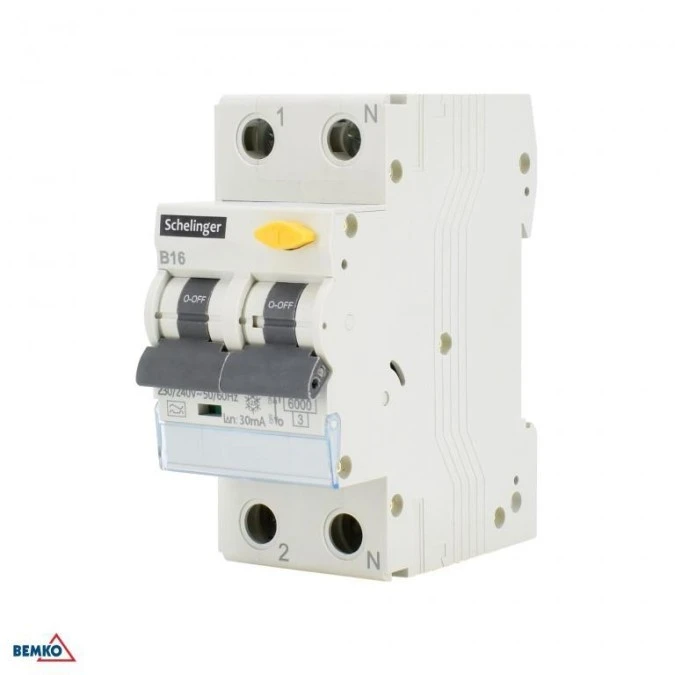 WYŁĄCZNIK RCBO 2P B 16A 30mA TYP AC SCHELINGER A08-GVL-AC-B16
