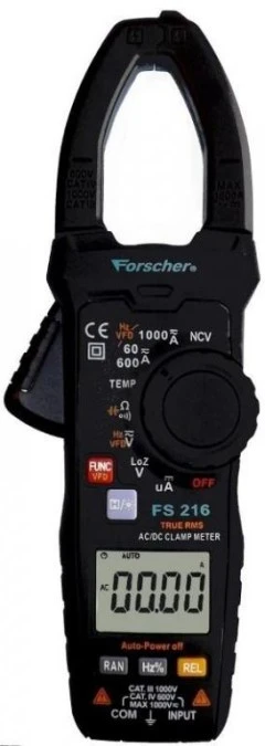 13. Multimetr cęgowy z autozakresem i pomiarem True RMS miernik uniwersalny z wyświetlaczem LCD FORSCHER FS216 447.34