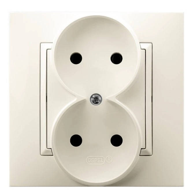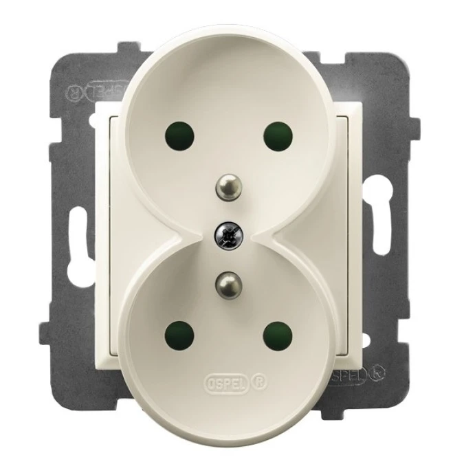 AS Gniazdo podwójne bez uziemienia z ramką z przesłonami ecru GP-2GP/27 OSPEL