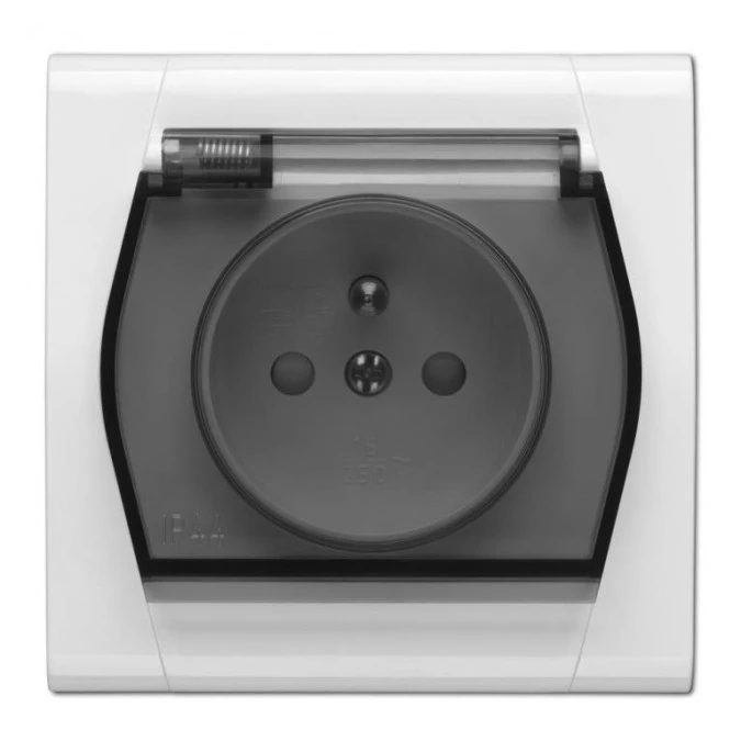 GPT FESTA Gniazdo pojedyncze 2P+Z IP44 z klapką białe/dymne 0873-10
