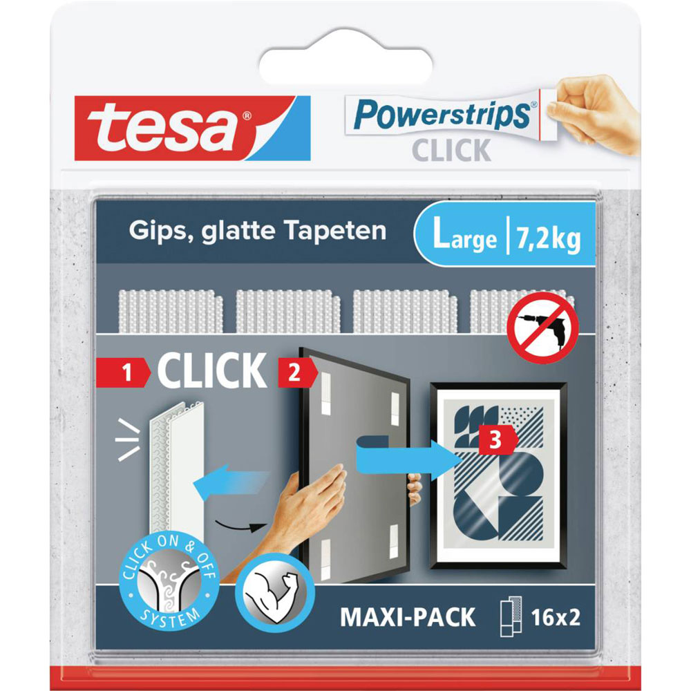 tesa 77722-00020-00 Powerstrips CLICK Large Adhesive Hooks 85mm x 20mm 16 Pair