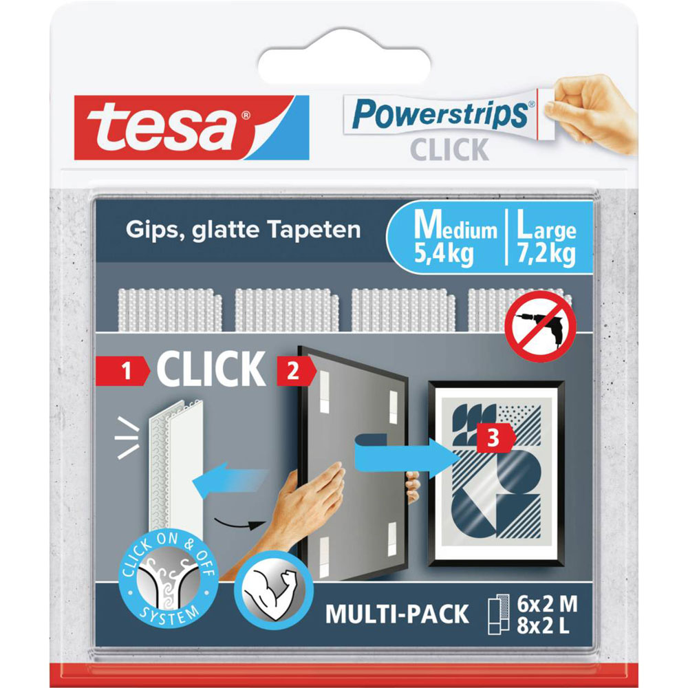 9. tesa 77722-00020-00 Powerstrips CLICK Large Adhesive Hooks 85mm x 20mm 16 Pair 83.06