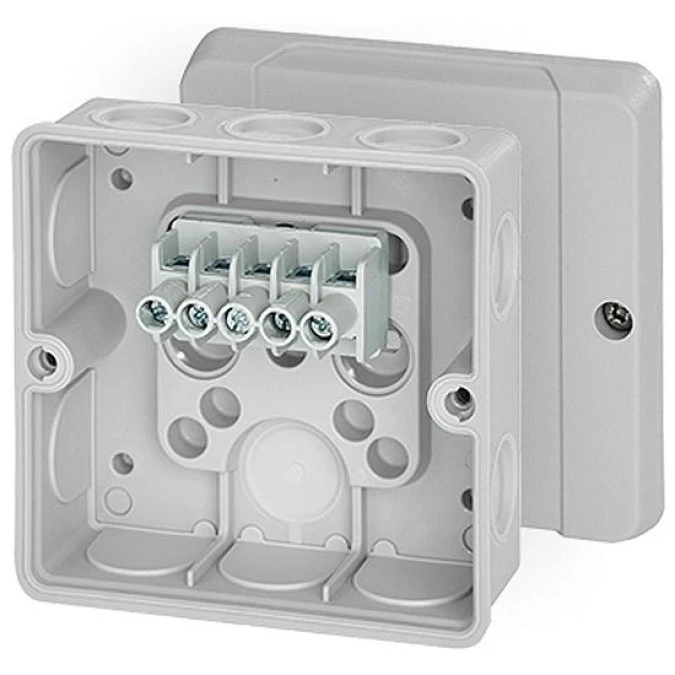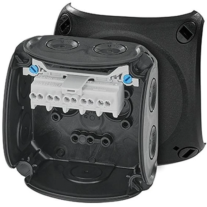 1. Puszka instalacyjna DK 0202 B natynkowa dwa zaciski na każdy biegun z linką łączącą pokrywę z podstawą 93x93x62mm hermetyczna IP 55.79