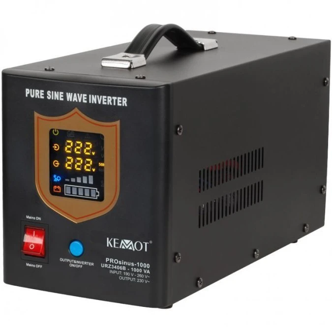 Zasilacz awaryjny UPS przetwornica PRO sinus 12V/230V AVR 700W / 1000VA 10A czarny KEMOT do centralnego ogrzewania (pieca CO, po