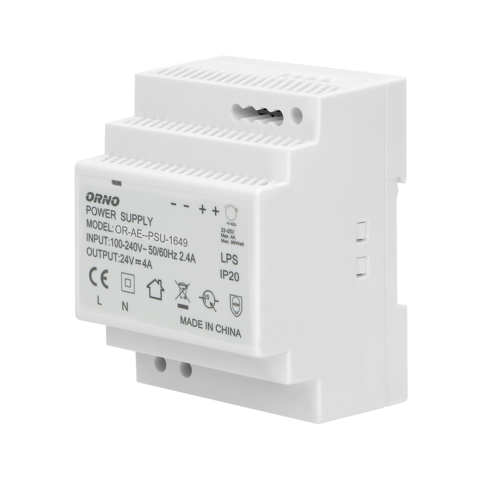 Zasilacz na szynę DIN 24VDC. 4A. 100W. szerokość 4 moduły OR-PSU-1649