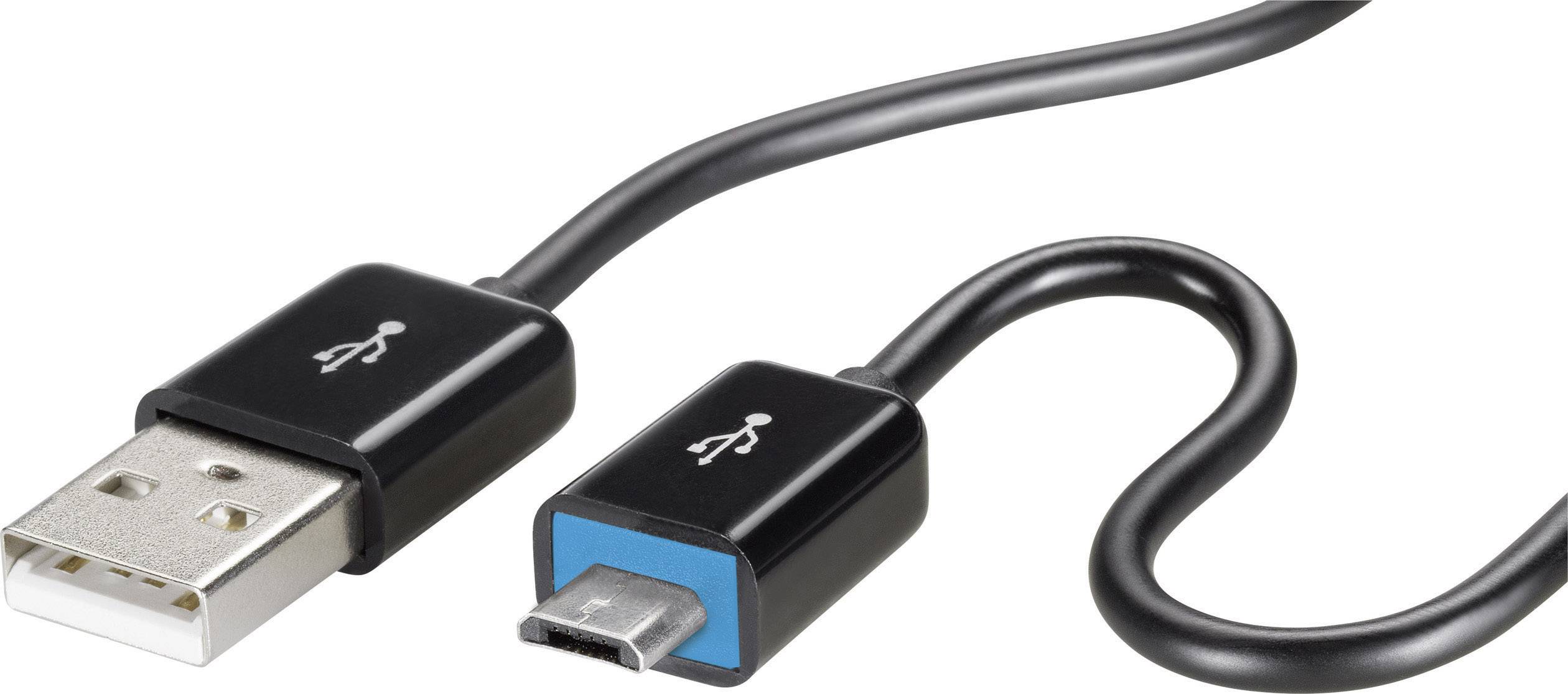 Renkforce Kabel USB USB 2.0 Złącze męskie USB-A, Złącze męskie USB Micro-B 1.50 m czarny oplot SuperSoft, z LED RF-40807