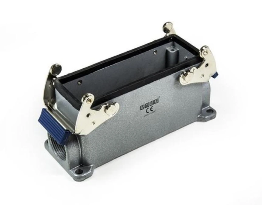 Przyłącze metalowe puste 24 pin, 16 A, 2 x boczne przyłączenie (montaż pow.), ręczne zamknięcia z rolką - metalowe T0-EBM24GD27