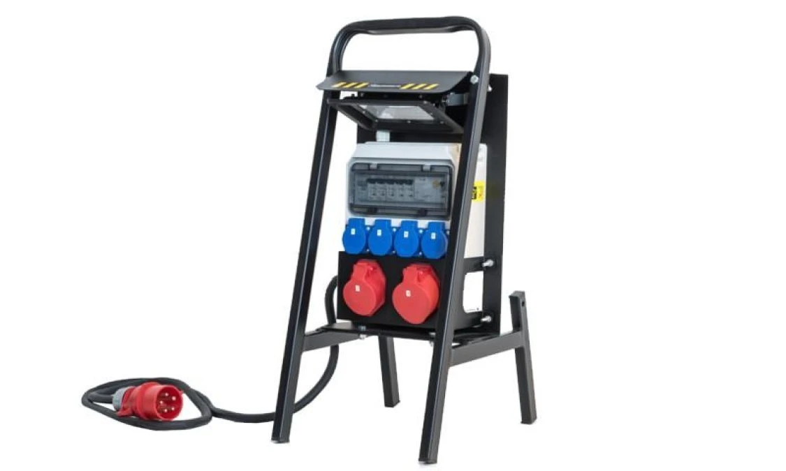 Rozdzielnica budowlana ERB32R4 z oświetleniem, na stojaku, IP54, gniazda: 2x CEE 32A, 2x CEE 16A, 4x GS 230V