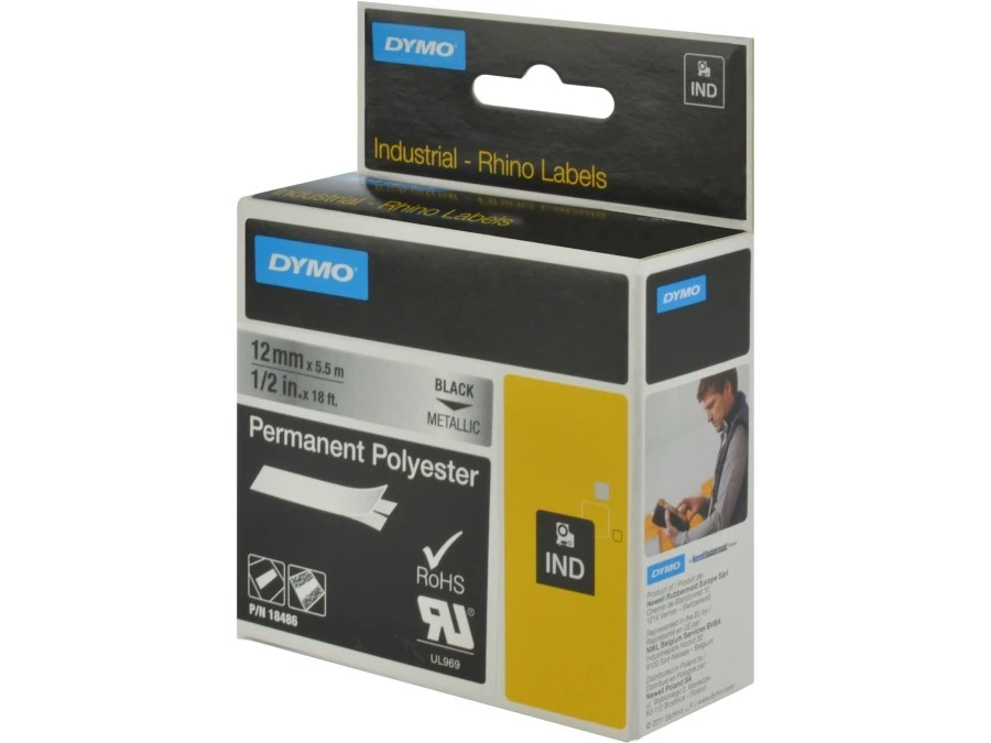 Taśma DYMO IND poliestrowa trwała 9mm x 5,5m (biała / czarny nadruk) RHINO Industrial [18482 / S0718240] ORYGINALNA