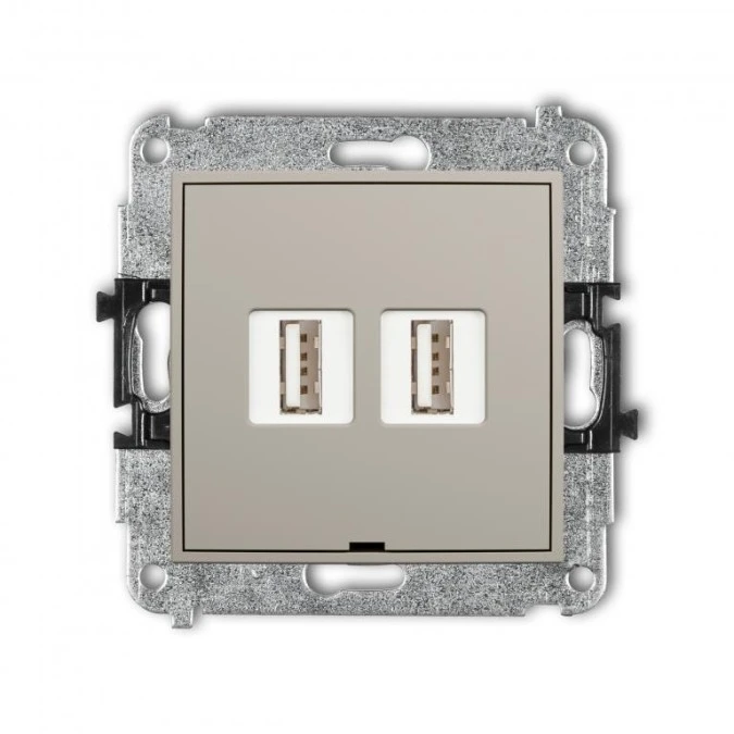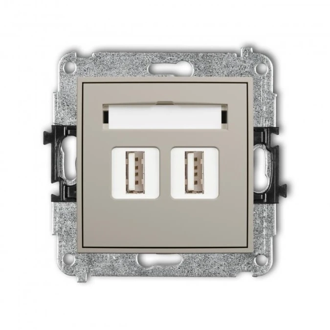 1. MINI Mechanizm gniazda podwójnego 2xUSB A-A 2.0, bez pola opisowego taupe 60MGUSBBO-2 121.49