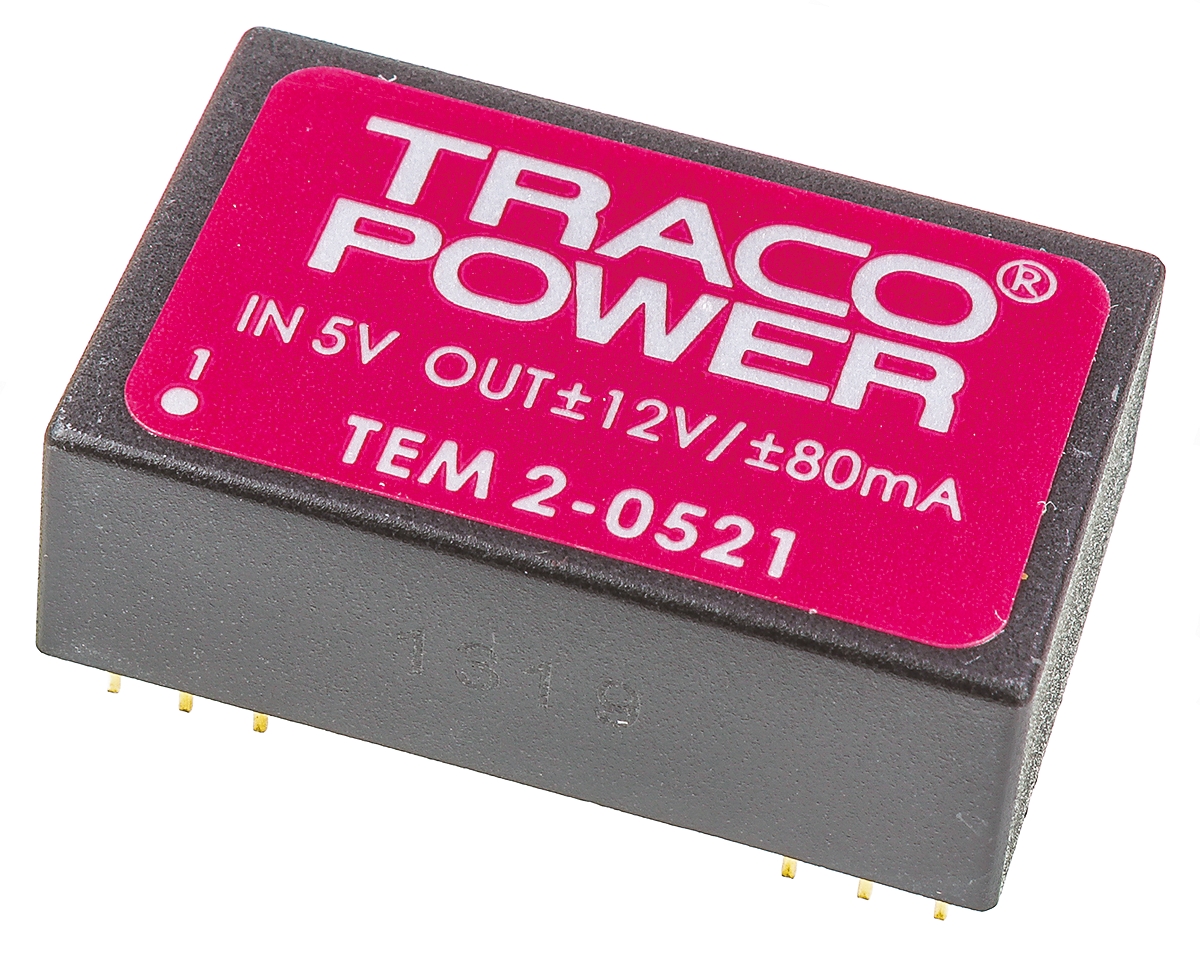Przetwornica DC-DC, 2W, Uwe 4,5 → 5,5 V DC, Uwy ±12V dc, Iwy ±80mA, TRACOPOWER