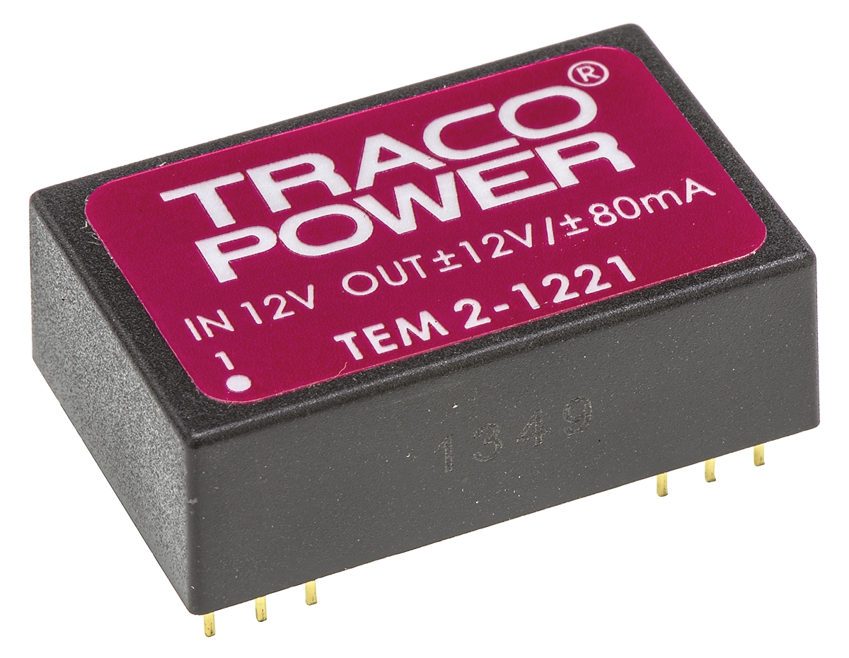 Przetwornica DC-DC, 2W, Uwe 21,6 → 26,4 V DC, Uwy ±12V dc, Iwy ±80mA, TRACOPOWER