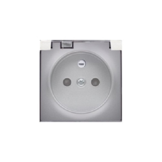 3. Simon Basic Gniazdo wtyczkowe Schuko do wersji IP44 (moduł) 16A, 250V~,zaciski śrubowe srebrny mat. Klapka transparentna BMGSZ1B 20.66