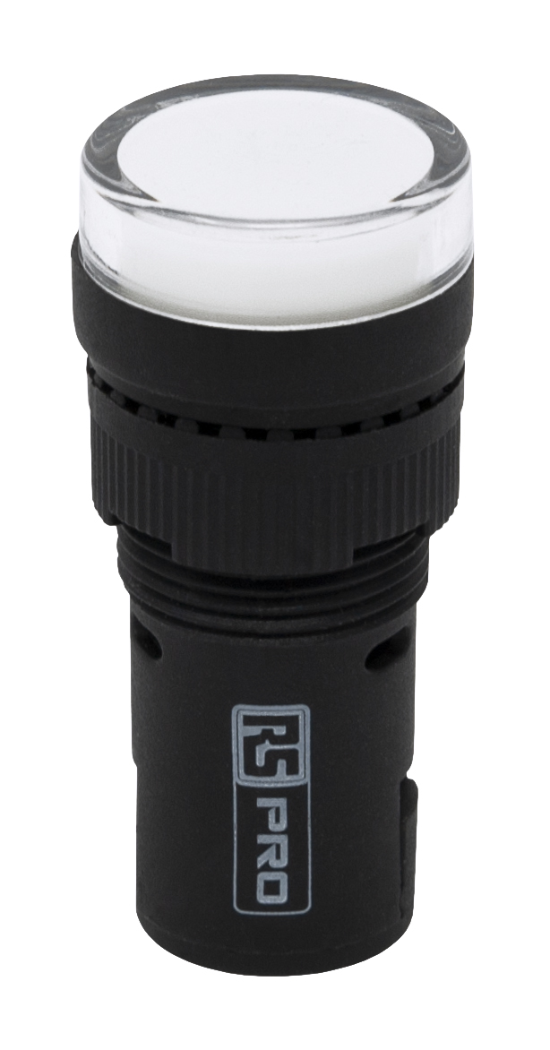 5. Kontrolka 24V ac/dc Biały RS PRO średnica wycięcia 16mm Montaż panelowy Śruba 25.71