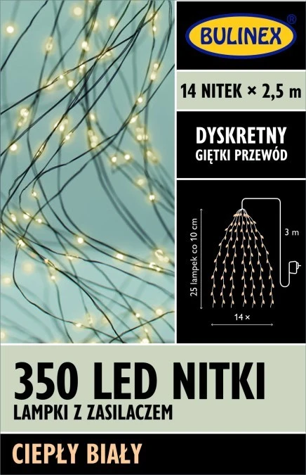 Lampki choinkowe 350 LED NITKI lampki z zasilaczem ciepłybiały 10-098