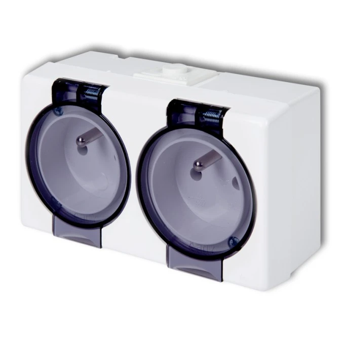 Gniazdo podwójne z/u n/t IP44 GNT 2x2P+Z białe 0322-02 Hermes Elektro-Plast