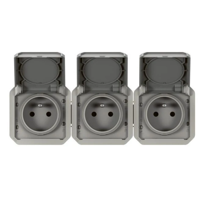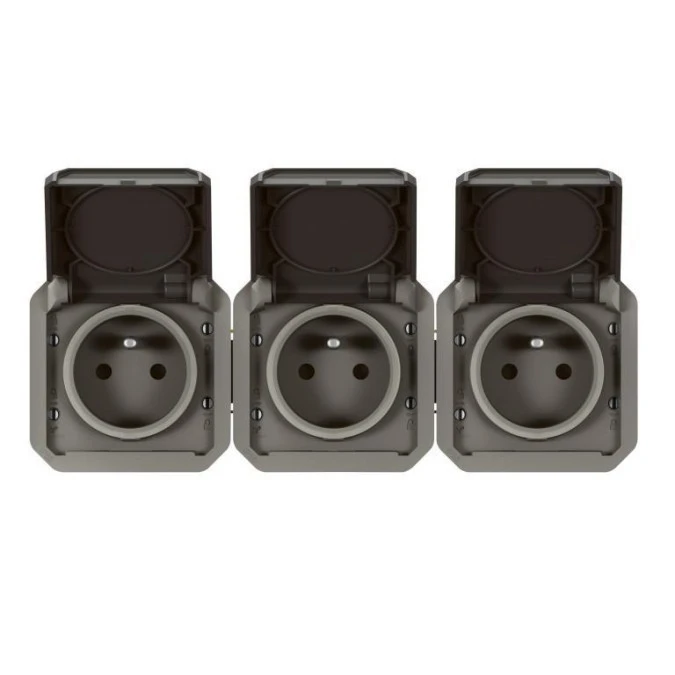 Gniazdo Zasilające Potrójne Natynkowe Hermetyczne Ip65 Szare Z Klapką 3X 2P+Z...