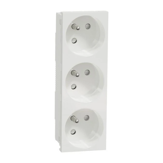 Gniazdo 3x2P+PE (45 stopni) z przesłonami, Nowa Unica, zaciski bezgwintowe, białe