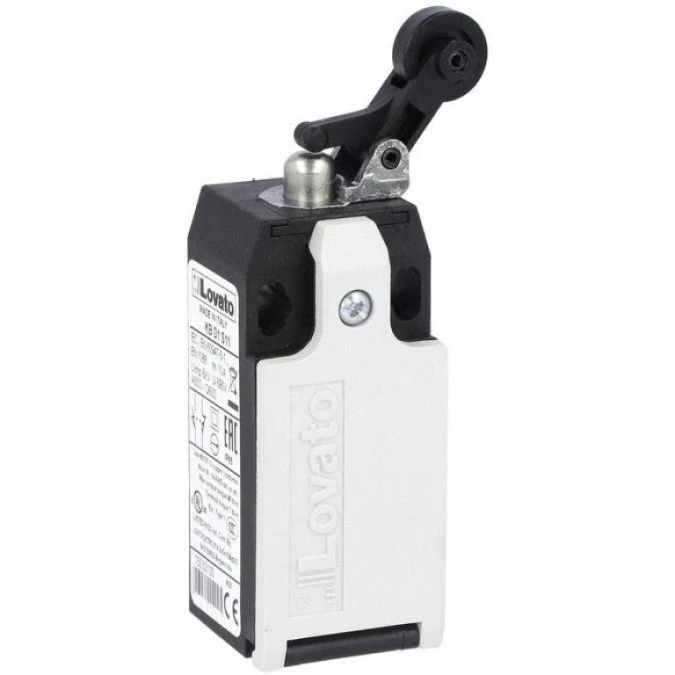 1. Krańcówka Wyłącznik krańcowy z rolką plastikową wciskaną bocznie 10A (styki migowe 1NO+1NC) IP65 seria K LOVATO 125.39