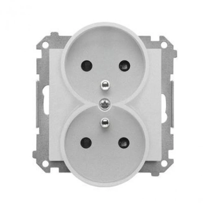 Simon 55 Gniazdo wtyczkowe podwójne z uziemieniem z przesłonami (moduł) 16 A, 250 V~, szybkozłącza Aluminium mat TGZ2MCZ.01/143