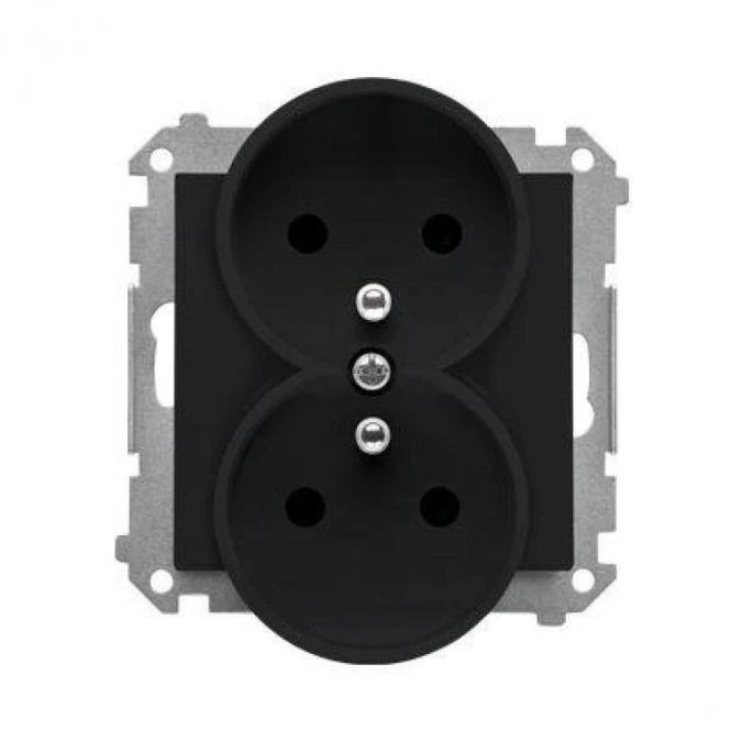 8. Simon 55 Gniazdo wtyczkowe podwójne z uziemieniem z przesłonami (moduł) 16 A, 250 V~, szybkozłącza Czarny mat TGZ2MCZ.01/149 47.38