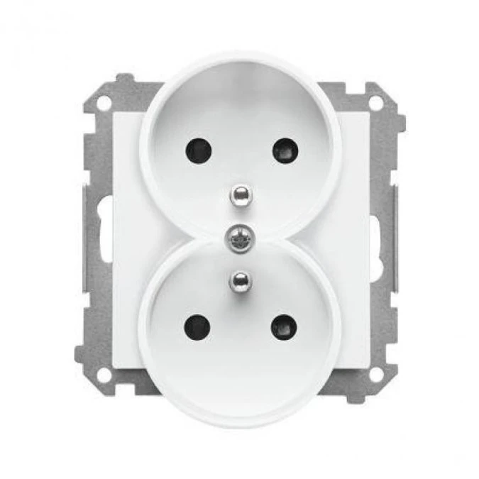 7. Simon 55 Gniazdo wtyczkowe podwójne z uziemieniem z przesłonami (moduł) 16 A 250 V~, szybkozłącza Jasnoszary mat TGZ2MCZ.01/114 47.38