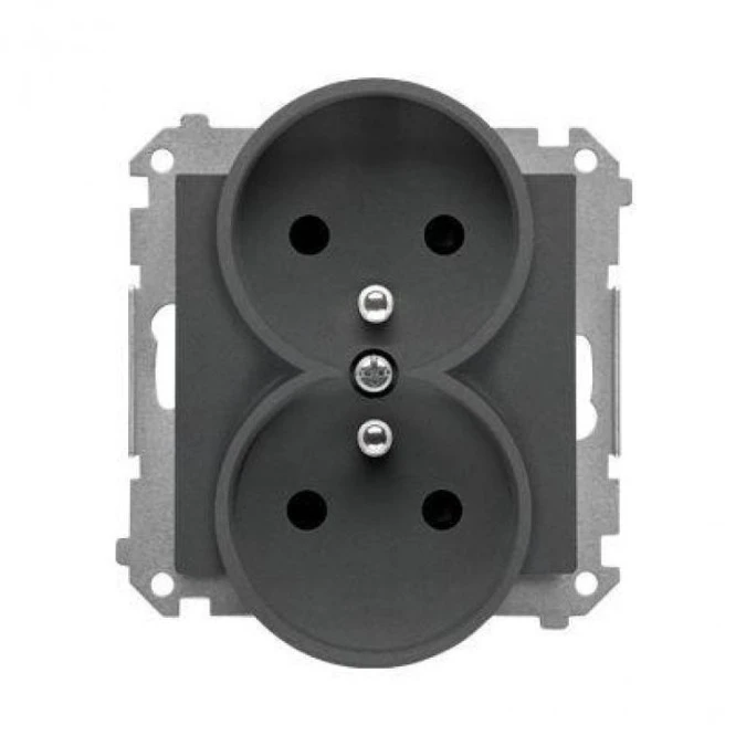 Simon 55 Gniazdo wtyczkowe podwójne z uziemieniem z przesłonami (moduł) 16 A, 250 V~, szybkozłącza Grafitowy mat TGZ2MCZ.01/116