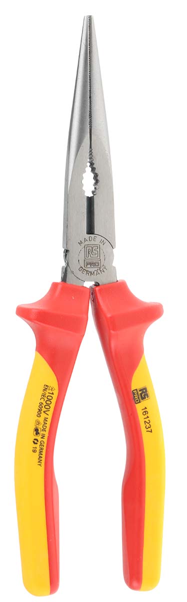 11. Szczypce płaskie długie Szczypce z długimi końcówkami RS PRO długość całkowita: 200 mm Stal VDE 202.69