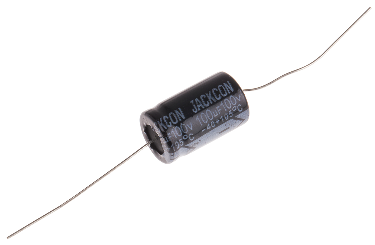 1. Kondensator 100μF 100V dc Osiowy, Otwór przelotowy RS PRO 13 (Dia.) x 22mm 6.76 x5