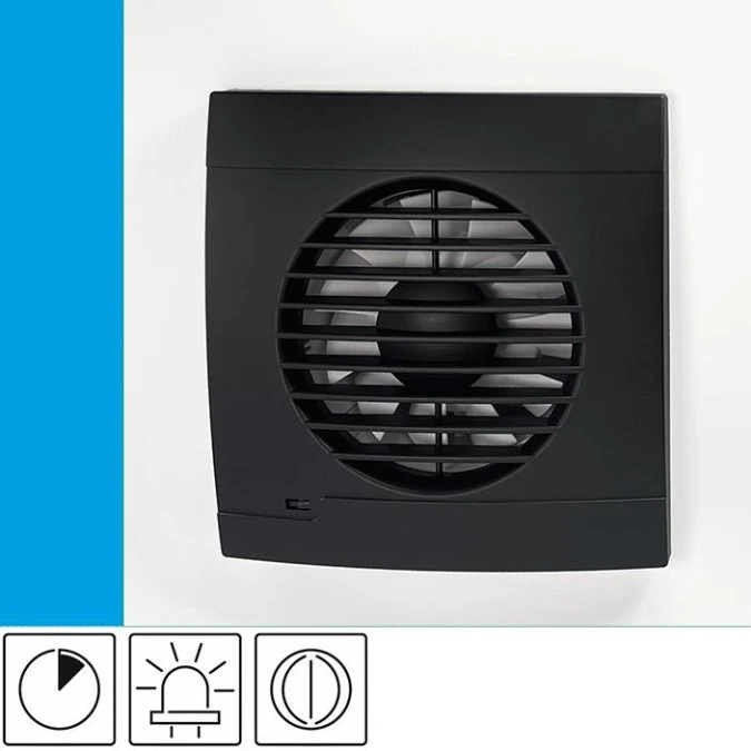 9. Wentylator domowy Vulkan RS100T+ Onyx klapka zwrotna, wyłącznik czasowy, kontrolka LED, fi 100 mm, kolor czarny 129.08
