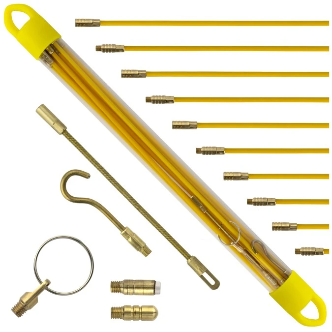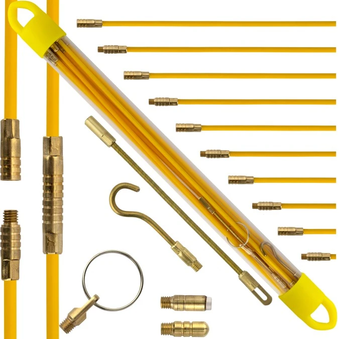 14. Zestaw skręcanych prętów z włókna szklanego do przeciągania kabli fi:4mm 10x 1m z zestawem 5 końcówek NEKU 98.94