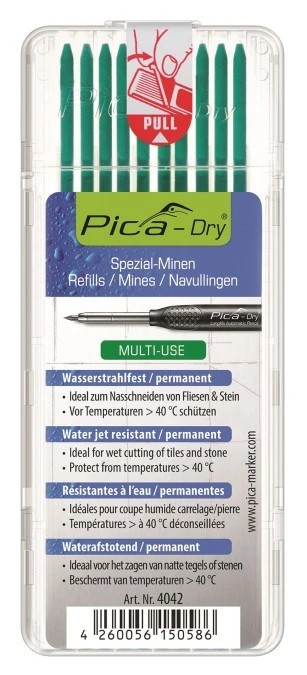 11. Wkłady zapasowe do ołówka 3030 wodoodporne zielone PICA Dry 4042 10szt 42.29