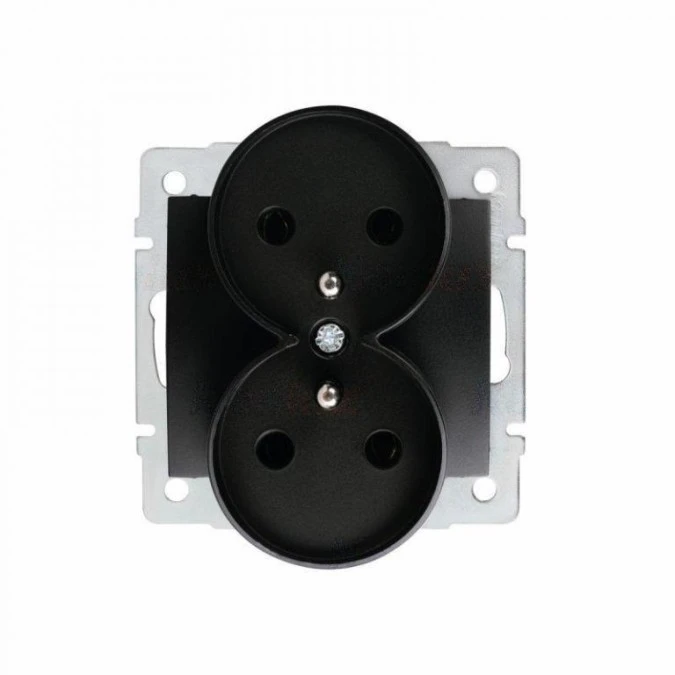 LOGI Gniazdo podwójne 2x2P+Z kompletne z przesłoną styków Czarny mat 33602