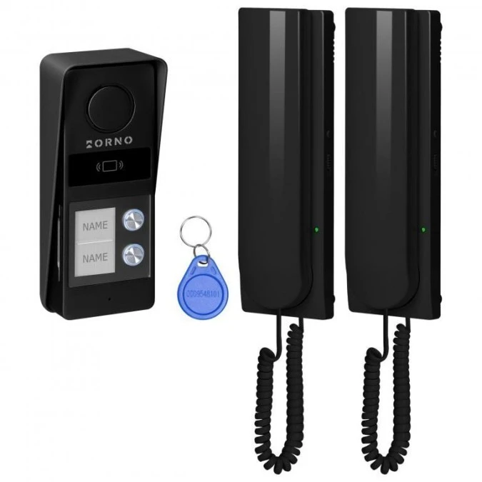 ATIN MULTI, zestaw domofonowy dwurodzinny, 2-żyłowy, RFID, czarny,OR-DOM-RD-938/B