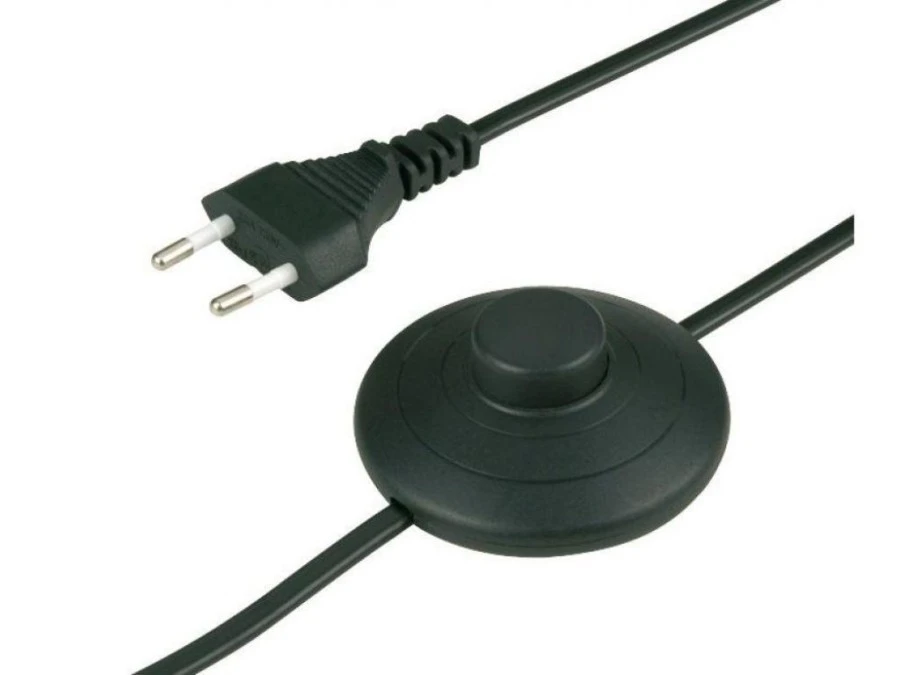 Przewód sznur przyłączeniowy z euro-wtyczką płaską i z wyłącznikiemiem nożnym, 2m, czarny / 05666
