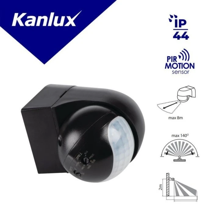 12. Czujnik ruchu PIR ALER MINI-B 800VA max 8m 140/45 st. IP44 IIkl. ścienny czarny 23459 24.72