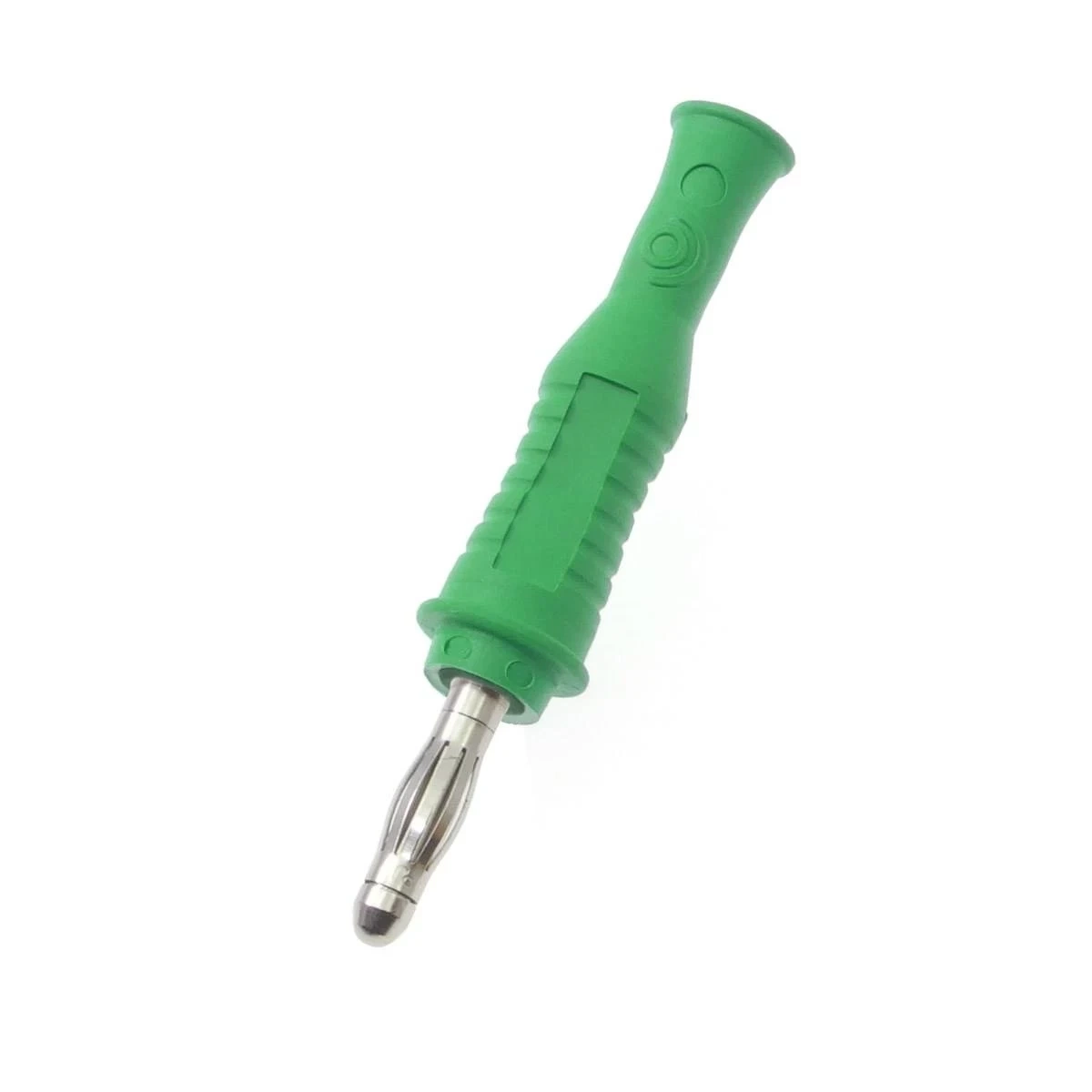 Wtyk izolowany 4mm lamelkowy przykręcany, elastyczna osłona z odgiętką, zielony