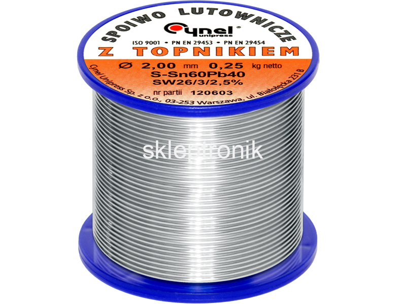 2. Cyna Cynel Sn60Pb40 z topnikiem SW26 1,20mm 500g 113.58