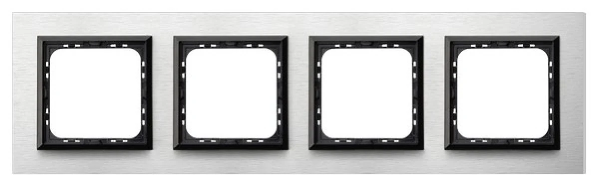 1. IMPRESJA PRESTIGE Ramka 4 poczwórna aluminiowa 4 mm szczotkowane aluminium + ramka czarna R-4YAC/62/25 OSPEL 180.12