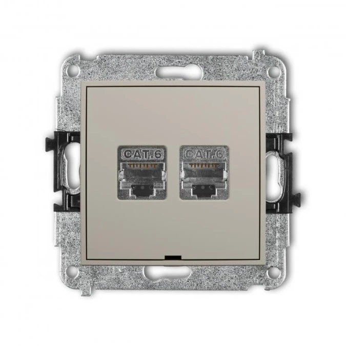 10. MINI Mechanizm gniazda komputerowego podwójnego 2xRJ45, kat. 6, ekranowany, 8-stykowy taupe 60MGK-6 133.41