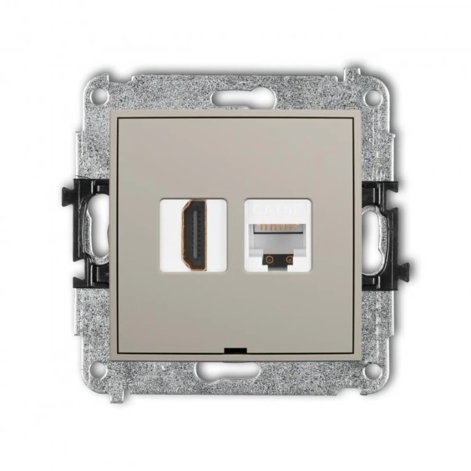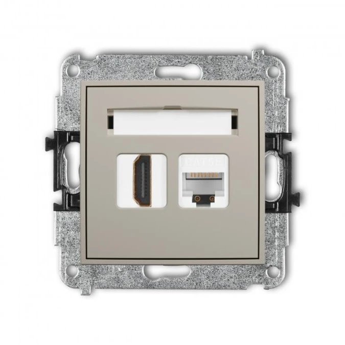 ICON Mechanizm gniazda pojedynczego HDMI 2.0, 4K + gniazda komp. poj. 1xRJ45, kat. 5e, 8-stykowy, bez opisu taupe 60IGHKBO