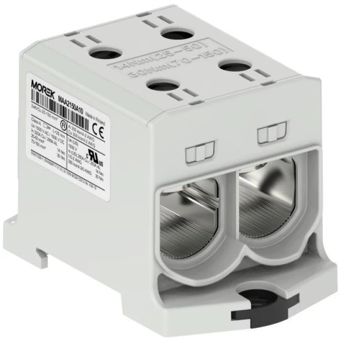 13. Złączka szynowa 2-torowa Al/Cu 25-150mm2 640A 1500V na TH35 szary OTL150-2 MOREK 141.36