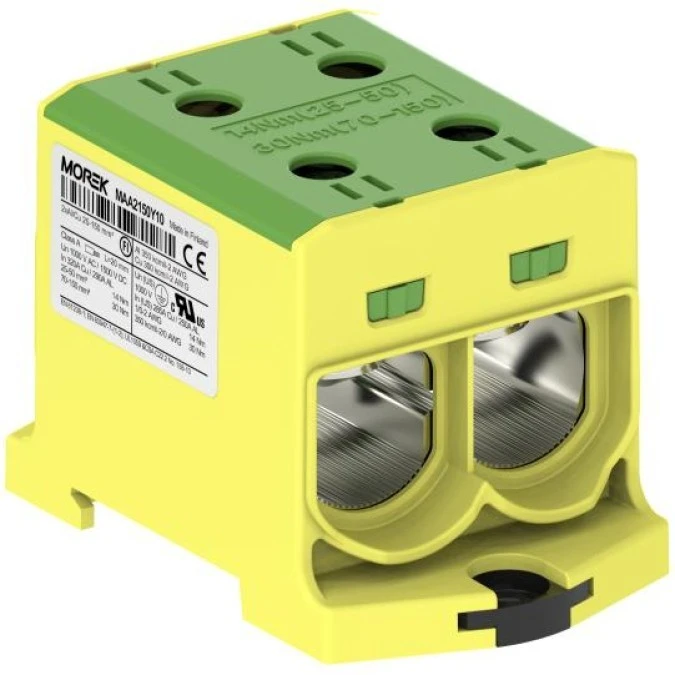 Złączka szynowa 2-torowa Al/Cu 25-150mm2 640A 1500V na TH35 żółto-zielony OTL150-2 MOREK