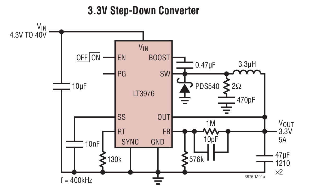 10. 40V, 5A, 2MHz Step-Down Switching Regulator with 3.3μA Quiescent Current Sample