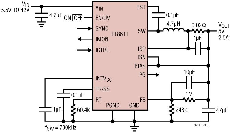 42V, 2.5A Synchronous Step-Down Regulator with Current Sense and 2.5μA Quiescent Current