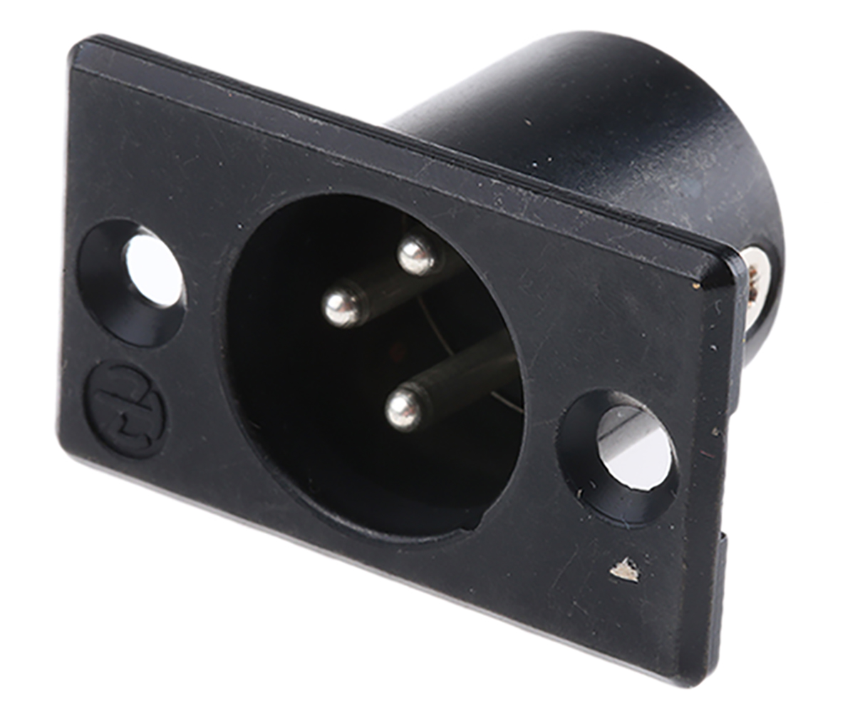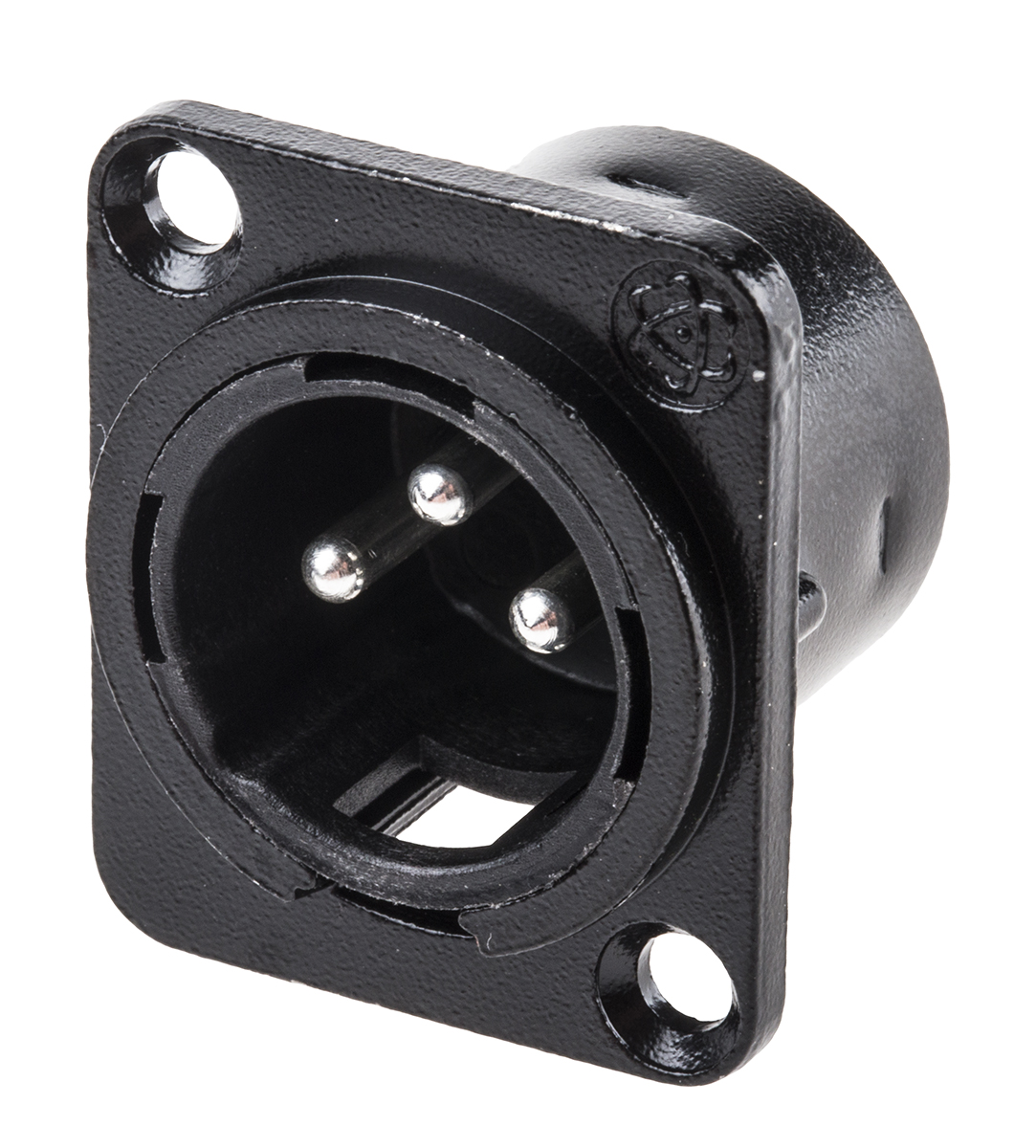 Złącze XLR 3 -pinowe Montaż na panelu Męski Czarny