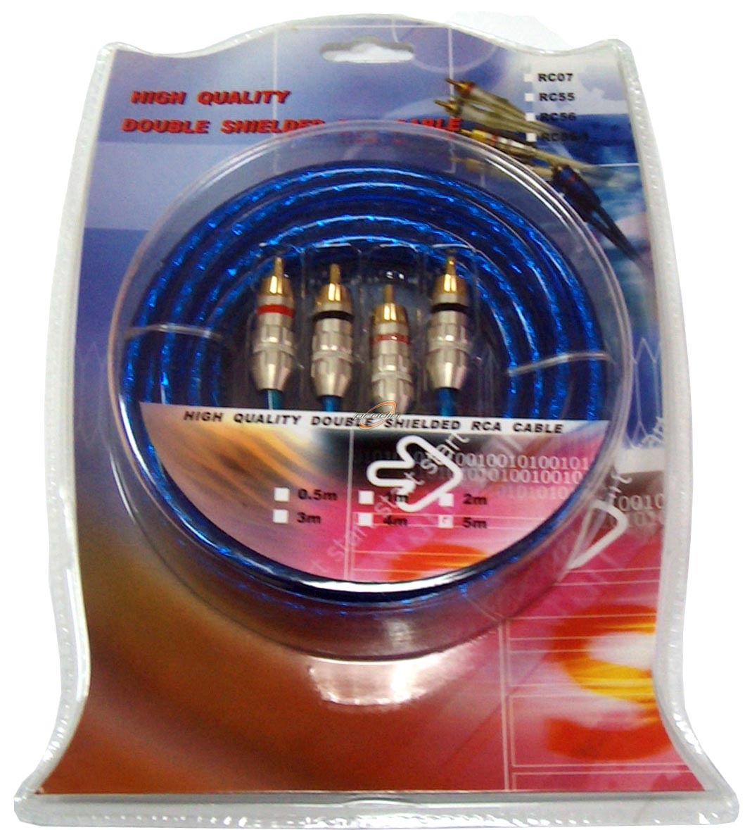 Kabel 2RCA(cinch)-2RCA(cinch) 5m + sterowanie, niebieski, wtyki proste