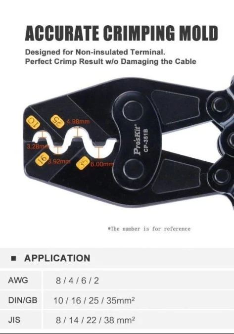 Zaciskarka konektorów nieizolowanych AWG 8/6/4/2, DIN 10/16/25/35 mm2, JIS 8/14/22/38 mm2 CP-351B 23042